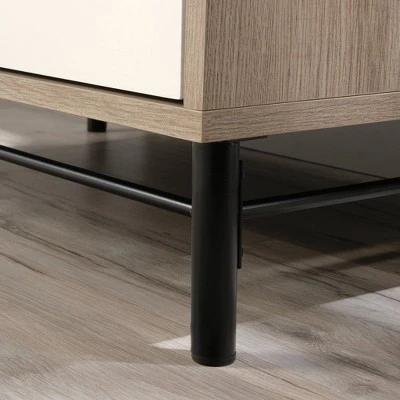 Different is good. Bring modern design into your home with this lateral file from the Anda Norr® collection. This 2 drawer lateral file cabinet is designed with a durable, spacious, 1″ thick top for gallery type display of office supplies, photos of your family, and the perfect accent lamp. This wood lateral file cabinet includes two drawers with full extension slides that hold your letter or legal size hanging files. With safety in mind, this modern file cabinet includes an interlocking safety mechanism that allows only one drawer to open at a time. This mixed materials file cabinet is rounded out with a powder coated metal base and leather pulls on the drawer fronts to complement the woodgrain and white accents. Finished on all sides for versatile placement in any room of your home, this wood file cabinet will look polished from every angle. With a Sky Oak® finish with White accents, this lateral file cabinet is the perfect touch of modernity to spice up your home office.