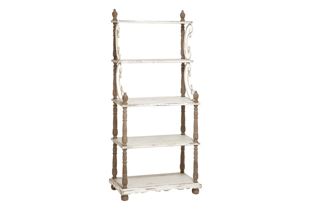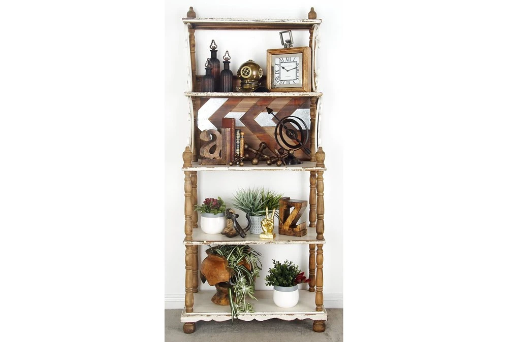 This 32X75 White Wood Shelving Unit is the perfect addition to any rustic home décor with its charming style and sturdy wooden material. It comes with four shelves and added storage capabilities, making it both functional and stylish.