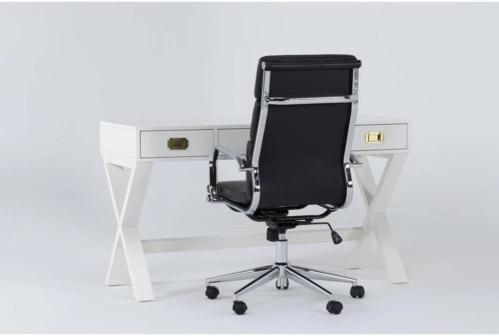 Our Adams White desk is inspired by Campaign-style designs, which were made for military campaign travel. Details like cross legs, a trestle base and recessed metal handles in matte gold are pretty and practical. This item also features solid poplar wood, a high-gloss paint finish and convenient USB ports and power outlets. Perfect for mixing and matching with other bedroom and office furniture, this piece allows you to create a truly custom space.