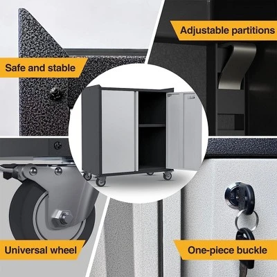 Enjoy a clutter-free and organized space for your garage, office, home, or school with the AOBABO Steel Lockable Wheeled Storage Cabinet. This versatile cabinet combines sturdy construction, adjustable shelves, and a sleek design to meet all your storage needs.Keep your items secure and protected with the lockable wheels and doors, ensuring the safety of your valuables and power tools while offering the convenience of easy moving. The sleek and modern design seamlessly blends with any environment so you don’t have to worry about redecorating. With adjustable shelves, you can customize the organizer to fit your storage requirements, great for files, art supplies, woodworking tools, and more. Made from solid steel materials, this cabinet is built to last. Cleaning and maintenance are a breeze with the easy-to-clean surface, allowing you to effortlessly wipe away any dirt or spills.Get ready to experience the convenience and reliability of a well-organized space with the Aobabo Steel Lockable Cabinet.