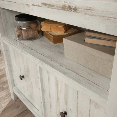 Are the stacks of paper and folders on your desk becoming unbearable? Free up your workspace and get organized with this 1-drawer lateral file from the Dakota Pass® collection. This open shelf lateral file features a large drawer with full extension slides that can hold letter, legal, or European sized hanging files to keep important documents organized. The open area above the drawer creates flexible storage for items of all shapes and sizes. Plus, this shelf provides easy-access storage for office items like binders and folders. This lateral file cabinet features a spacious top surface that provides additional storage and a place to display home décor items like decorative plants and framed photos. This lateral file with storage is finished on all sides so it will look polished from every angle. Assembly is quick and easy with a slide-on molding and a T-lock drawer system. Finished in White Plank®, this small lateral file will have your office space feeling organized in no time.