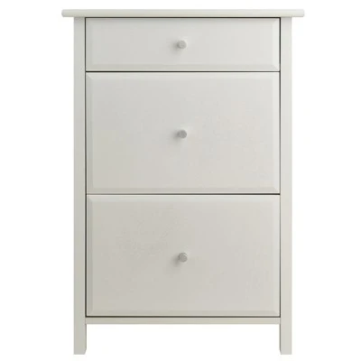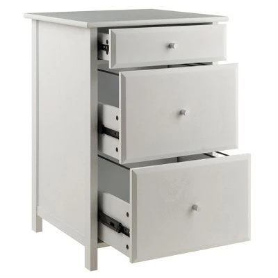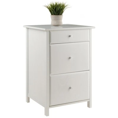 The Delta File Cabinet is a practical and handsome solution for storing your important files and paperwork. Finished in white, it will enhance any professional or home office space. Two lower drawers offer ample room for both legal and letter-sized files, and the top drawer is perfect for smaller items, such as pens, pads, envelopes, and more. It can also be used without the file rods as a storage cabinet to keep office supplies within easy reach. Overall dimensions are 30.7″H x 20.8″W x 20.2″D.