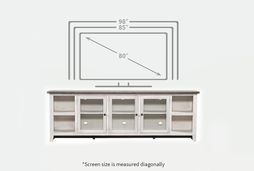 Dixon White 97″ Tv Stand With Glass Doors
