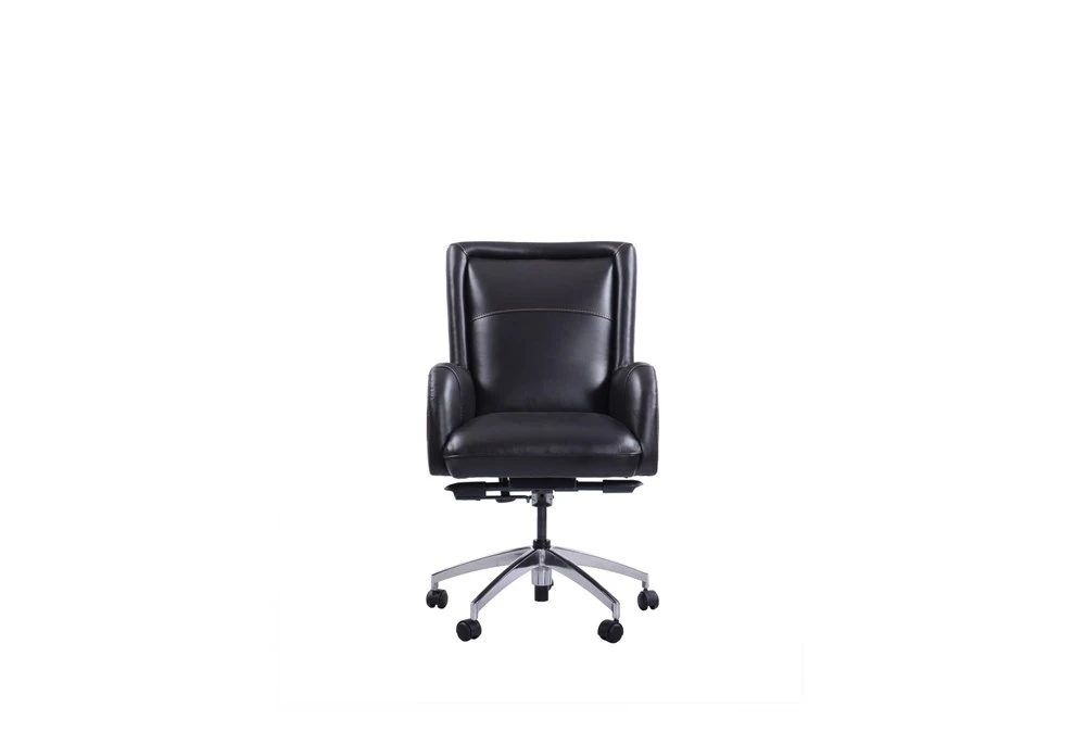 Experience the epitome of luxury with the Edgar Black Leather Office Chair, featuring a traditional style and high-quality leather material. This chair boasts wheels, arms, a swivel function, and a high back for ultimate comfort and convenience in any office setting.
