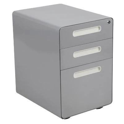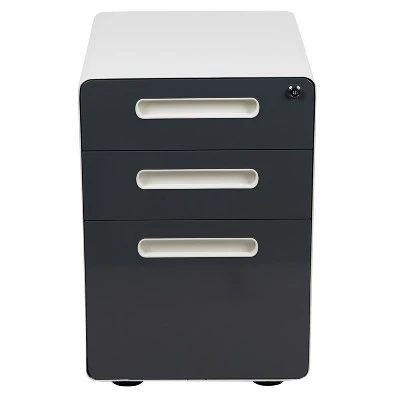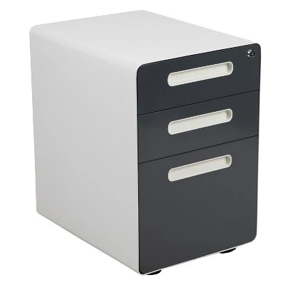You may love your current desk but have nowhere to store your paperwork without cluttering the desktop, insert this locking file cabinet to keep the minimalistic appearance of your modern office desk. This 3-drawer pedestal file cabinet has low set casters to keep up with the needs of a busy worker. The convenience of casters is ideal for employees who regularly file documents, allowing them the option to pull the cabinet near them while monitoring incoming emails. The modern 3-drawer mobile file cabinet has two utility drawers to hold your small office supplies, snacks, vitamins and writing utensils while the hanging file drawer holds A4, letter, legal, and F4 hanging folders. Folder longer documents such as your legal size paperwork vertically using the conversion bar. An included pencil tray keeps your small supplies neatly stored and can be used in either of the two utility drawers. Two keys are included to keep in separate locations or as a duplicate for your assistant. Inset drawer handles provide a modern appearance and a worry-free solution to loosening handle screws. Organize your office space with this mobile under desk filing cabinet that comes fully assembled and ready-to-use. This ergonomic filing cabinet is a smart solution for any workplace whether used for heavy-duty daily filing or the casual user. Additional Features: Interlocking Tip Prevention Drawers opens one drawer at a time; conversion bar for vertical filing, Full Extension Sliders provide effortless opening and closing, Utility Drawers: 13″W x 18.75″D x 2.75″H; File Drawer: 13″W x 18.75″D x 9.75″H, Designed to fit under most tables and desks, Ships fully assembled