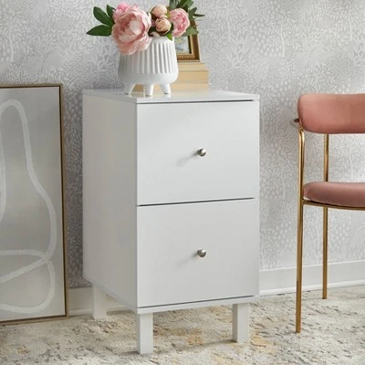 Neatly store your files away in this stylish Foster Filing Cabinet by Buylateral. This cabinet features two drawers for ample amounts of storage space. Square wooden legs give it a sturdy build, yet attractive appearance. This cabinet will neatly tuck next to a desk or chair. Store your precious files in a good home with the Foster Filling Cabinet.