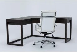 Pierce Espresso Corner Desk + Moby White High Back Office Chair