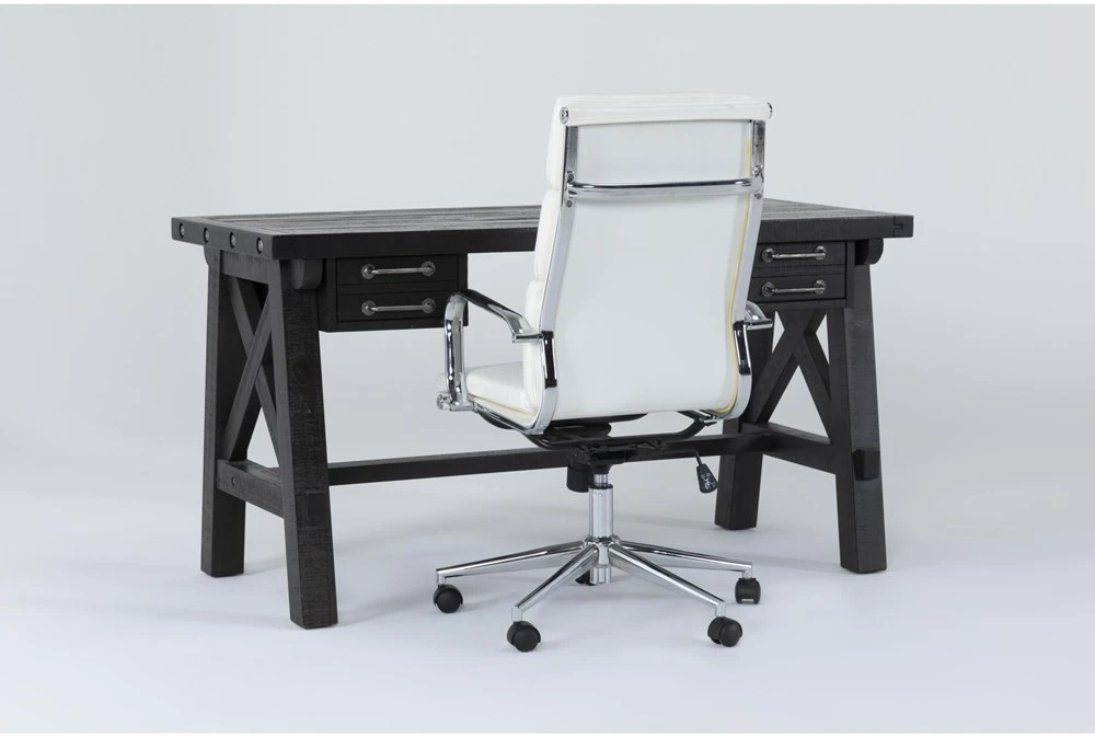 Thanks to 100% solid pine construction, the items in our Jaxon office collection are truly designed by nature. The wood’s character plays a central role in the authenticity and rustic charm of each piece, from the rugged texture, to the knots, nicks, splits and imperfections that ensure they’re one-of-a-kind. Decked in a dark cafe finish and distinguished by metal bolt detail, this handsome desk will help elevate your work space. You’ve always wanted to sit in the executive chair, and now you can. Sophisticated and supportive, our Moby office chair provides powerful style and quality at an outstanding value. It’s available in white, black and grey, so you can choose what looks best in your office. Handsome leather-like upholstery and a chrome-plated metal frame ensure maximum durability, while the caster base, swivel motion, gas lift and tilt lock function let you take charge of your comfort.
