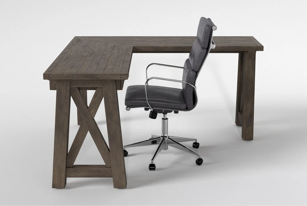One of our most popular rustic styles is coming to a work space near you, thanks to the expansion of our Jaxon office collection. Now, we have this corner desk available, so you can get the perfect, productive fit. Distinguished by all natural 100% solid pine construction, the piece brings unique texture, industrial character, a handsome grey finish and efficient design to your daily grind. You’ve always wanted to sit in the executive chair, and now you can. Sophisticated and supportive, our Moby office chair provides powerful style and quality at an outstanding value. It’s available as a high-back or low-back design that comes in black and grey, so you can choose what looks best in your office. Handsome leather-like upholstery and a chrome-plated metal frame ensure maximum durability, while the caster base, swivel motion, gas lift and tilt lock function let you take charge of your comfort.