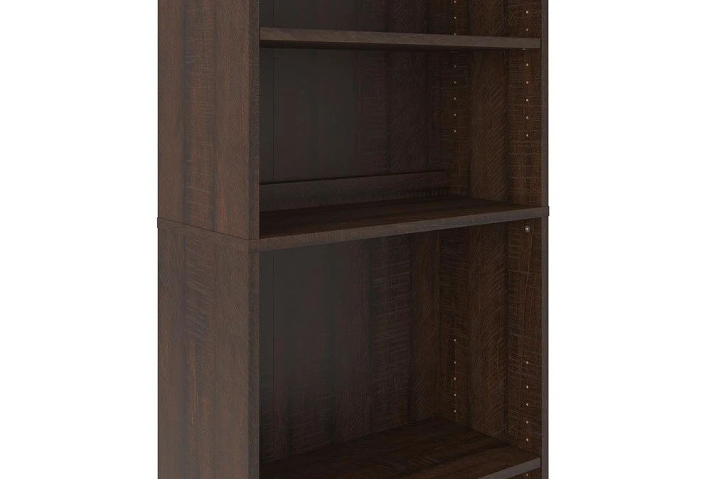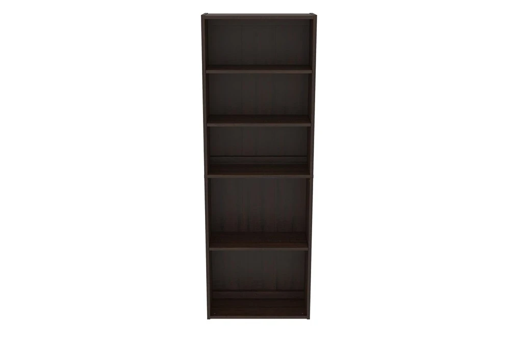 - The warm brown finish complements any decor, while the five shelves provide ample room for books, files, and decor items.