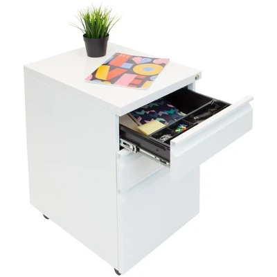 This mobile file cabinetfeatures intuitively designed drawers that meet all your home and office needs. We’ve designed our small file cabinet to fit neatly under your desk while optimizing storage. The top drawer provides easy to reach access to pens, papers, and other supplies. The second drawer offers deeper storage space for larger items, while the bottom third drawer can fit both legaland letter size hanging file folders.