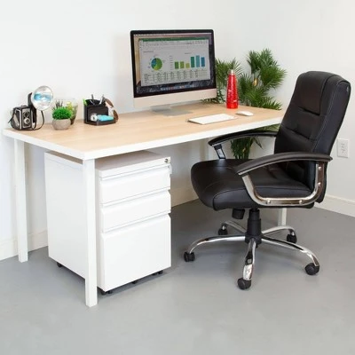 - Three drawers organize your office materials