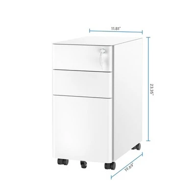 Mount-It! Mobile File Pedestal Cabinet With 3 Drawers & Lock | Slim Design Under Desk Storage & Organizer For Files, Folders & Office Supplies | White