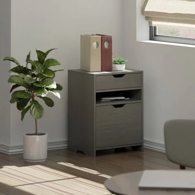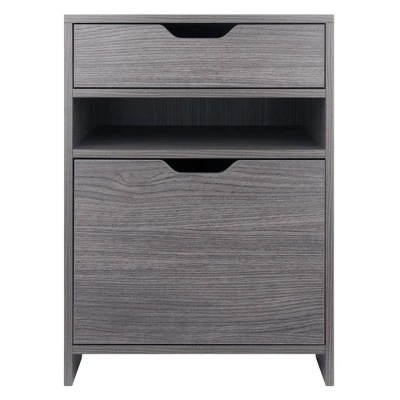 The Nova Filing Cabinet with Drawer offers a streamlined way to transform any room where you need stylish, easy-access storage. The Cabinet is ideal in a home office for keeping important paperwork and documents close at hand while doubling as a printer stand. Remove the file rods and it’s a great organizer in a garage or shed for tools and gardening equipment. Or use it as a side table in a child’s bedroom to reduce the clutter of toys, electronics, and sports gear. The file rods are adjustable to fit either legal or letter size files. And both the drawer and cubby add extra storage. The cut-out handles and wood-grained Charcoal finish provide a contemporary, simple look that will work well with almost any decor. For additional storage, combine the Nova Filing Cabinet with other organizers from the Winsome Nova collection. Made of sturdy composite wood, it conveniently ships in 1 box with all the hardware needed for assembly.