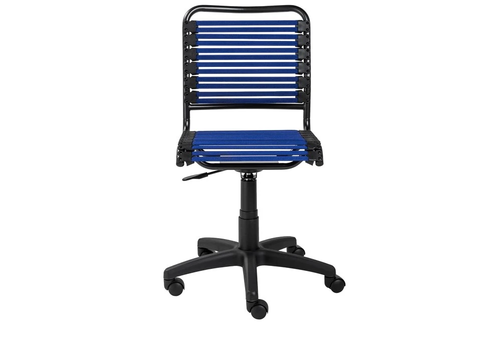 The Oslo Blue Low Back Bungee Desk Chair is a stylish and modern addition to any office space, featuring a comfortable armless design with a low back and bungee support system. This chair is also equipped with casters and wheels, gas lift, and swivel capabilities for easy movement and rolling.