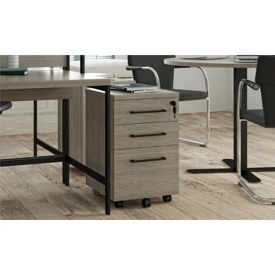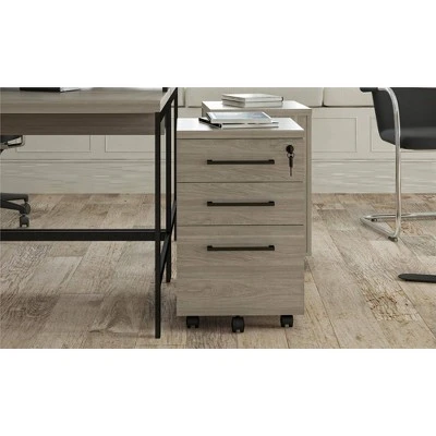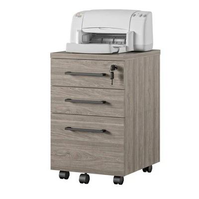 The Room & Joy Parkside Mobile File Cabinet allows you to keep your most important files organized and locked away. Two slim drawers are designed to hold loose paper, pens, notepads and office supplies. The bottom file drawer opens easily, even when full, with its additional wheel for rolling support. This file drawer holds legal-sized hanging file folders. The ball bearing slides make accessing important documents easy and are able to withstand years of use. The top drawer features a lock that locks all 3 drawers to keep your items secure. The durable melamine is easy to clean for accidental spills. This Mobile File Cabinet has been tested to meet ANSI-BIFMA standards for commercial use. The Mobile File Cabinet ships flat to your door and requires minimal assembly upon opening. The top 2 drawers can hold 20 lbs. while the lower drawer can hold 25 lbs. The top surface can hold 40 lbs. Once assembled, the File Cabinet measures to be 26.125″H x 15.75″W x 18.875″D.