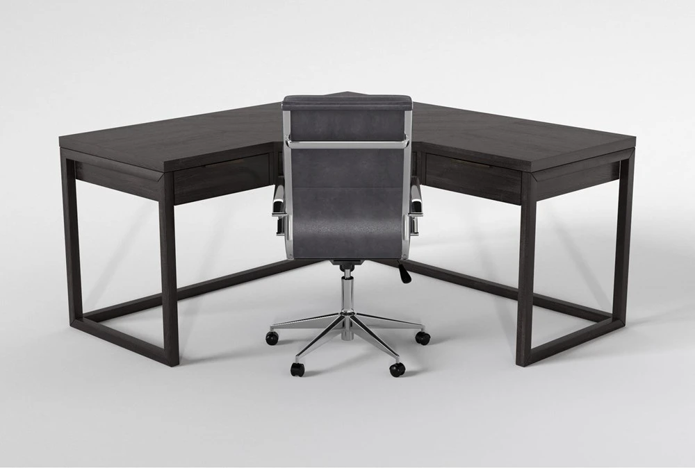 Pierce Espresso Corner Desk+ Moby Grey High Back Office Chair