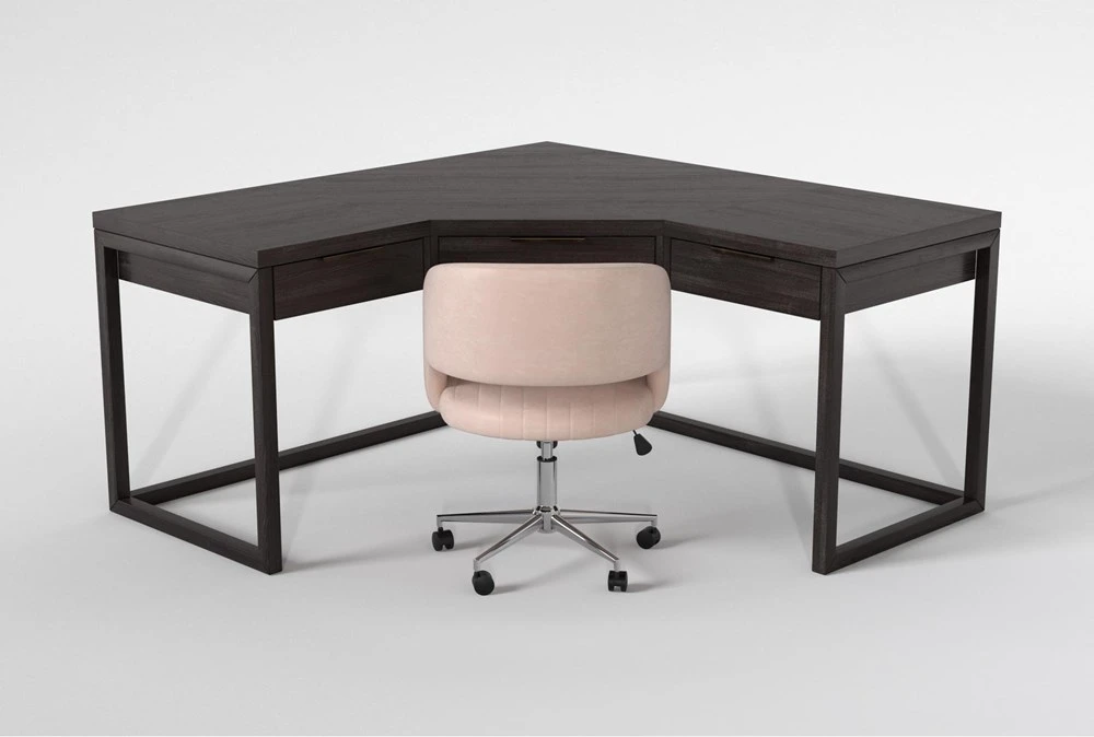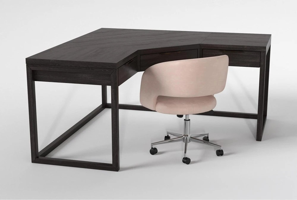 Pierce Espresso Corner Desk + Phoebe Blush Office Chair