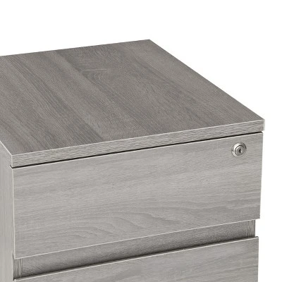 This Techni Mobili Rolling File Cabinet is a great space-saving solution for your home office to keep you organized. It’s two drawers provide the storage you need to file your important documents. The top drawer includes a lock and key to safely protect your personal belongings and confidential documents. The bottom hanging file cabinet allows for easy filing. It is made of MDF with a moisture laminate veneer atop five double wheel casters with locking mechanism.