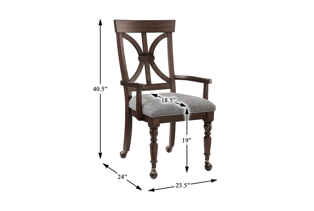 The Schiller Desk Chair with Casters is a beautifully crafted piece of furniture that seamlessly blends traditional style with modern convenience. This stunning chair comes equipped with casters, wheels, and arms, making it the perfect addition to any office setting.