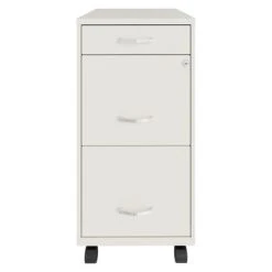 Holding all your important documents, the 2-Drawer Mobile File Cabinet by Space Solutions gives you some peace of mind by securing your sensitive files.Compact and designed for smaller office spaces, the cabinet is sure to fit in your home office, perfect for home file organization. Ample storage space and patented glide suspension make for easy storage and transportation of documents. The 4 rolling wheels let you maneuver the files wherever they’re needed with ease. A built-in cam lock secures the 2 top drawers, ensuring your sensitive documents are safe from prying eyes. Each drawer opens to 3 quarters of its full length for easy access to the interior. Built with 2 large drawers, the cabinet holds letter-sized hanging files, efficiently organizing tax and legal documents, paperwork, and other items.Perfect for home offices and smaller business spaces, secure and store all your sensitive documents in the Space Solutions 2 Drawer Mobile File Cabinet.