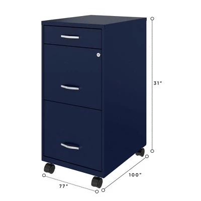 Holding all your important documents, the 3 Drawer Mobile File Cabinet by Space Solutions gives you some peace of mind by securing your sensitive files.Compact and designed for smaller office spaces, the cabinet is sure to fit in your home office, perfect for home file organization. Ample storage space and patented glide suspension make for easy storage and transportation of documents. The 4 rolling wheels let you maneuver the files wherever they’re needed with ease. A built-in cam lock secures the 2 top drawers, ensuring your sensitive documents are safe from prying eyes. Each drawer opens to 3 quarters of its full length for easy access to the interior. Built with 2 large drawers and a top pencil drawer for 3 drawers in total, the cabinet holds letter-sized hanging files, efficiently organizing tax and legal documents, paperwork, and other items.Perfect for home offices and smaller business spaces, secure and store all your sensitive documents in the Space Solutions 3 Drawer Mobile File Cabinet.