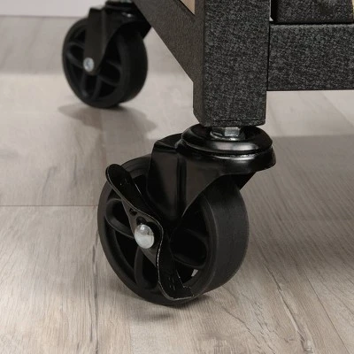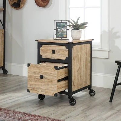 A lack of storage space can really bring your office down. Create a versatile storage option for all your important papers and office supplies with this rustic file pedestal from the Steel River® collection. Its roomy top drawer opens and closes on smooth metal runners for easy access storage of miscellaneous office items like notepads, pens and folders. The lower drawer with full extension slides can hold letter-size hanging files so you can keep all your papers organized and in a safe spot. This pedestal file cabinet also includes casters for mobility so it can move where you need it. The spacious top surface provides you with additional space for storage and display of items like framed photos and decorative plants. For an extra touch of detail, this metal and wood file cabinet features a textured, powder coated metal frame and corner accents. Finished on all sides in Milled Mesquite, this industrial-style file pedestal will keep your office feeling organized and clutter-free.