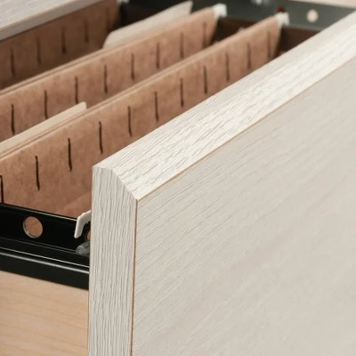 Keep your most important documents organized and easy to find with this 2-drawer lateral file cabinet from the Summit Station® collection. This lateral filing cabinet features strong and lightweight panel construction, meaning it is easy to assemble and light enough to be easily rearranged to any room of your home. The drawers of this 2-drawer filing cabinet include full extension slides and hold letter, legal, or European size hanging files. For your safety, this legal-size filing cabinet features an interlocking safety mechanism that allows only one drawer open at a time, preventing tip over accidents. Let’s not forget about the details—this lateral file cabinet includes elegant, tapered feet and chamfered edges for that added stylish touch. The top surface is ideal for home décor items, your printer, a lamp, and more. Finished in Glacier Oak™, your office will be stylish, and organized, in no time.